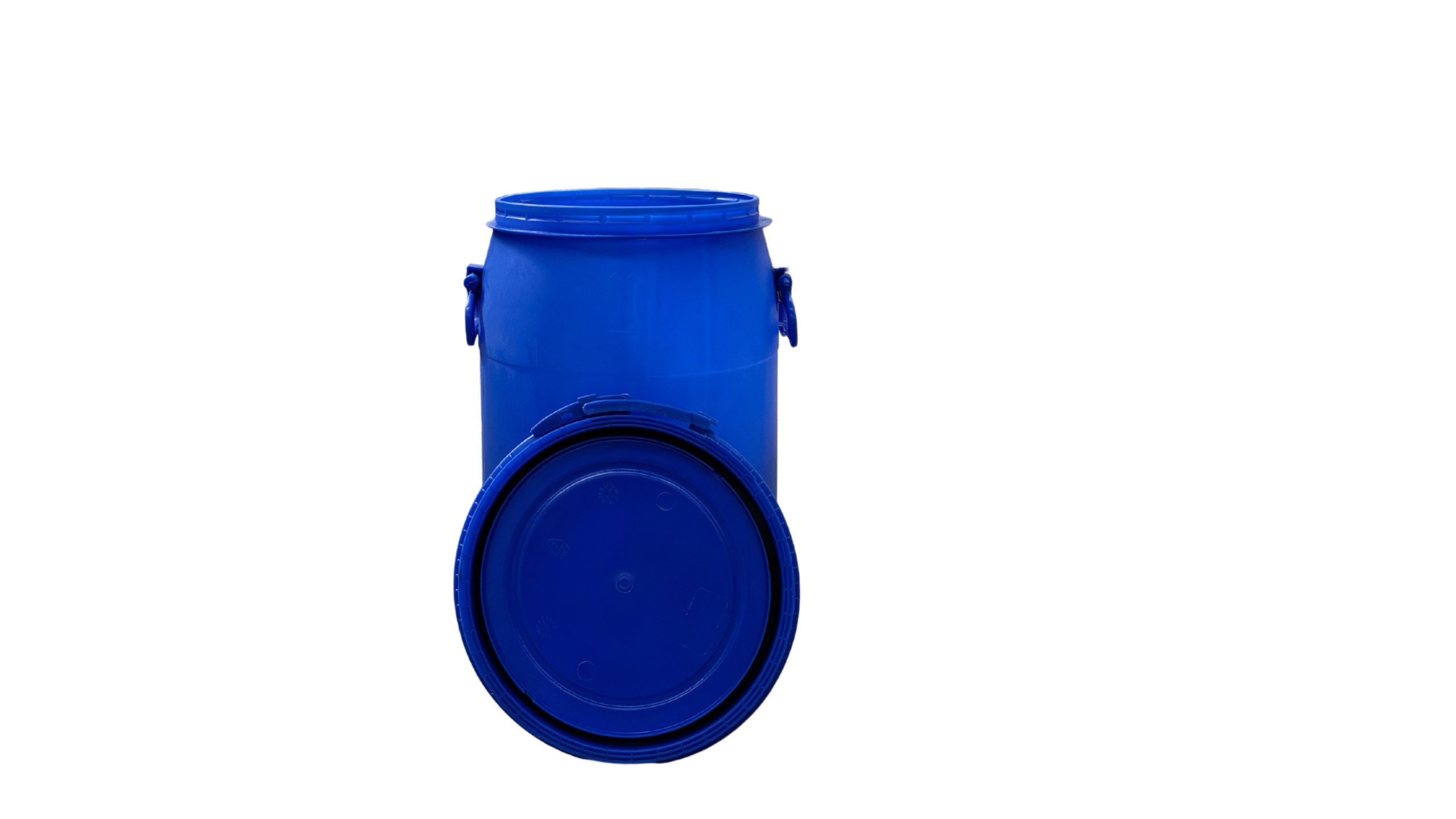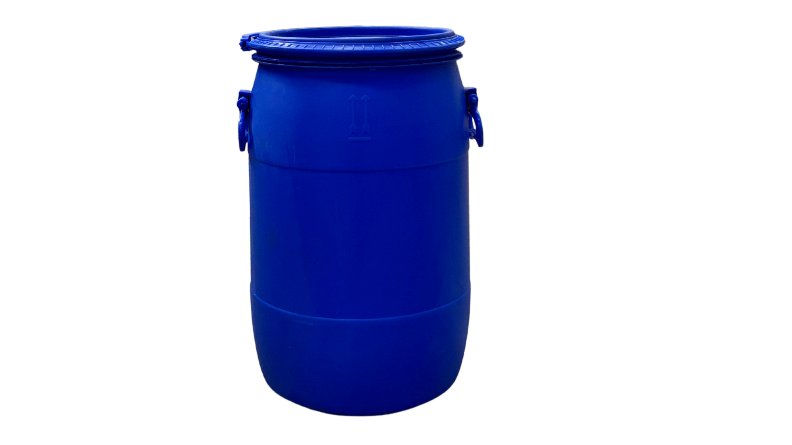 60 literes Műanyag levehető tetejű mosott, kék színű hordó, MŰANYAG BAJONETT ZÁRAS! Kettő füllel, a könnyebb emelés miatt!